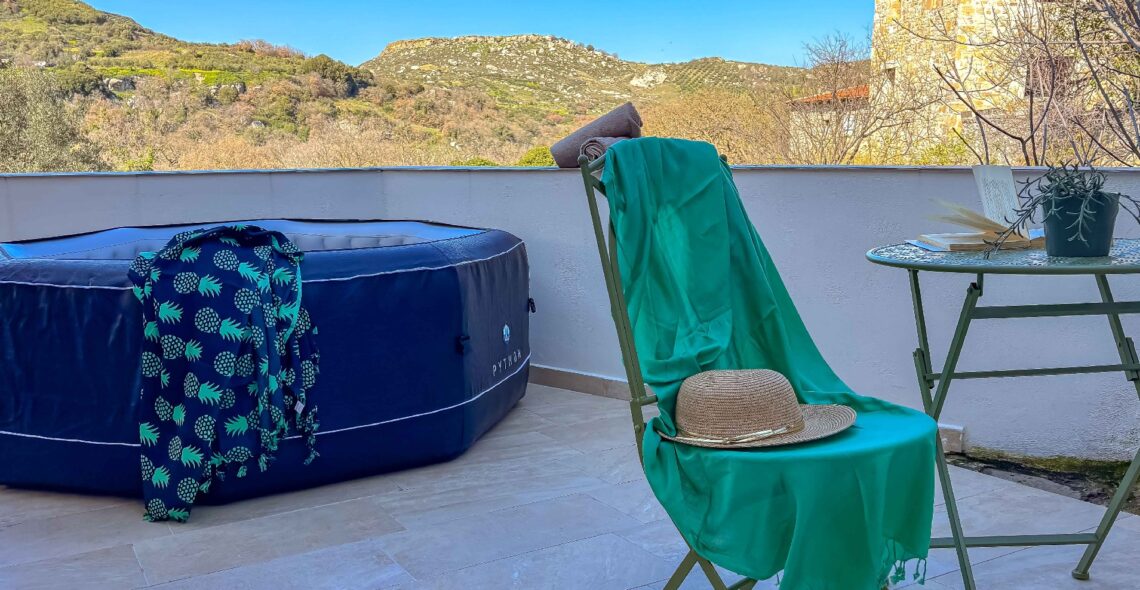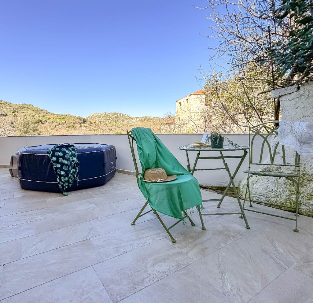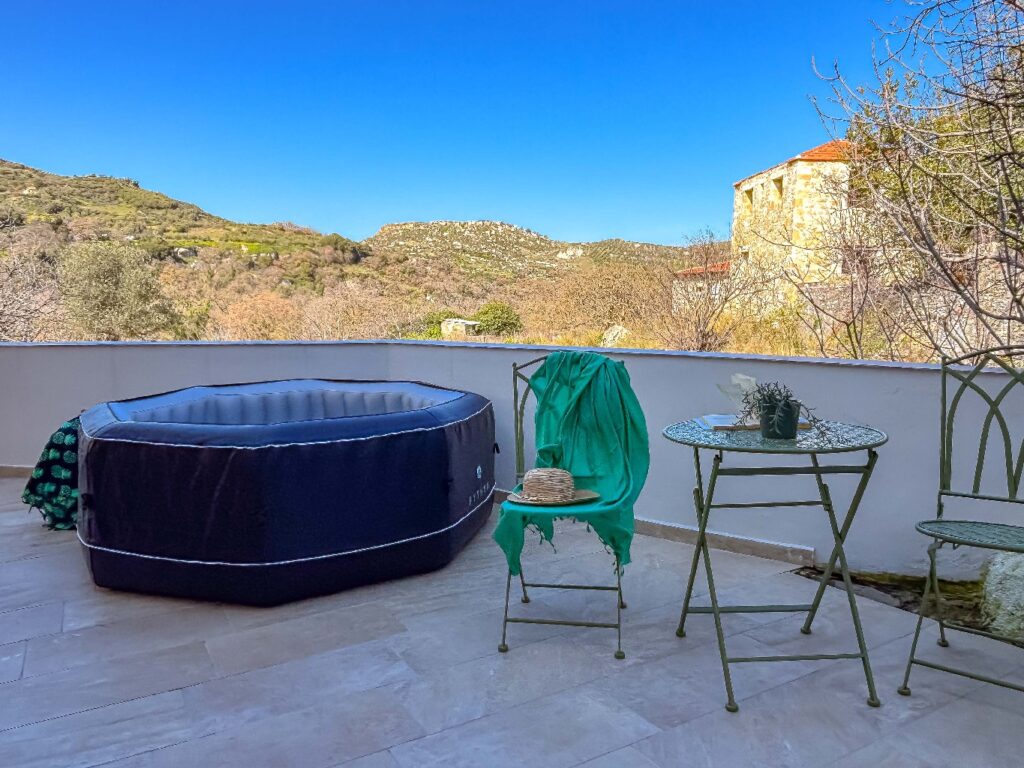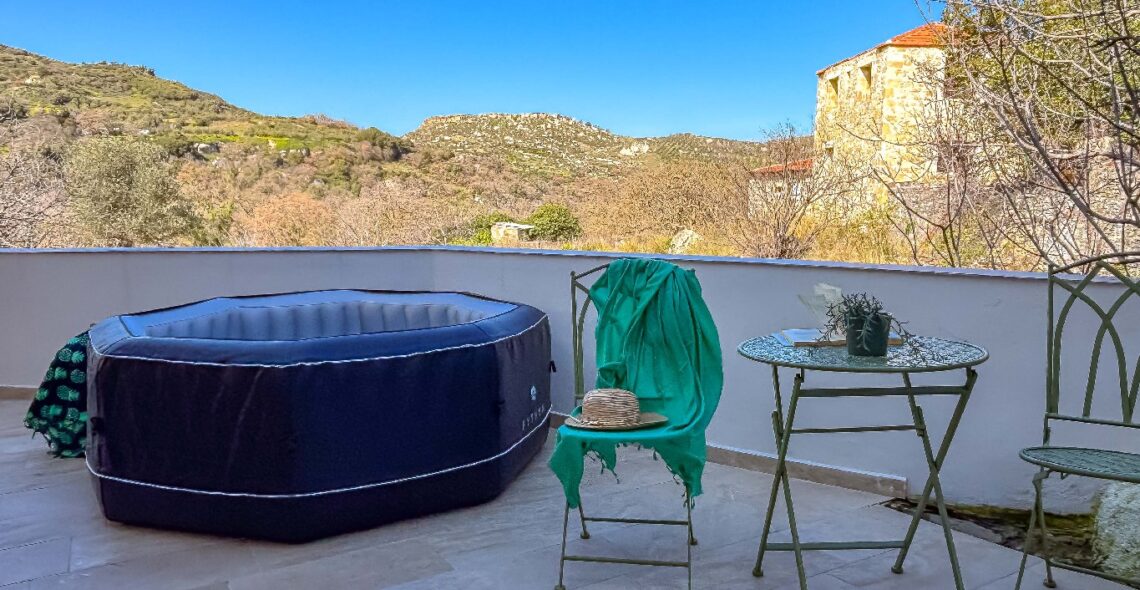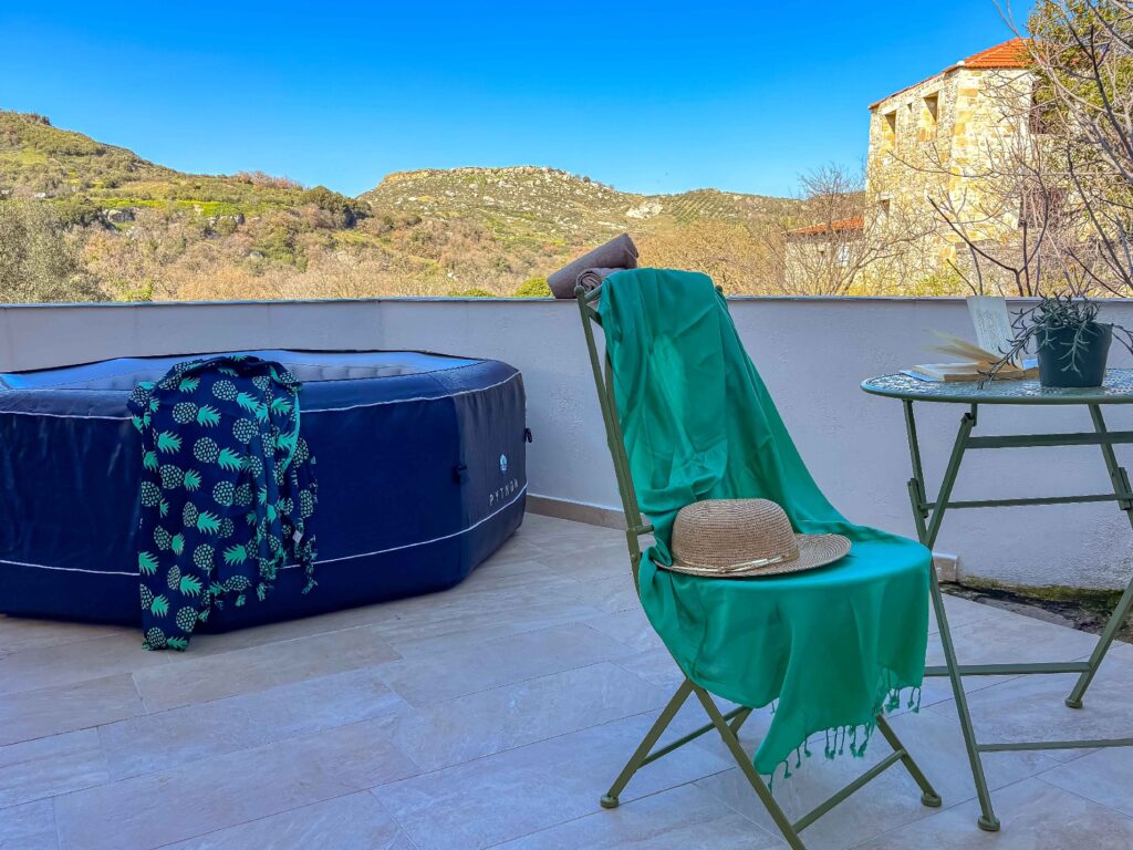 The private swimming pool is the perfect place to relax during warm summer days, where you can cool off and enjoy the Cretan sun in complete privacy.