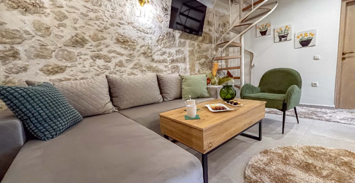 Nestled in a peaceful and scenic village of Heraklion, this charming stone villa offers a unique blend of traditional Cretan architecture and modern comfort — perfect for families or groups of up to four guests.