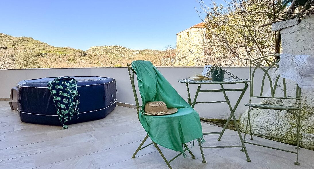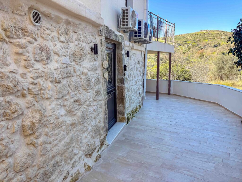 From the windows and outdoor areas of the house, you can enjoy breathtaking views of the mountains of the Cretan countryside — a landscape that combines peace, natural beauty, and the authentic atmosphere of Crete.