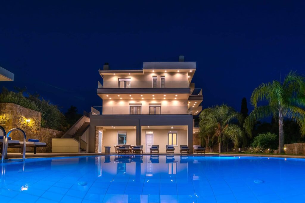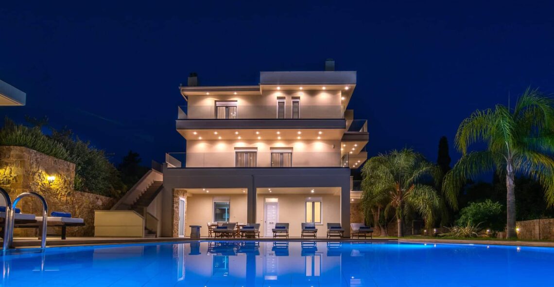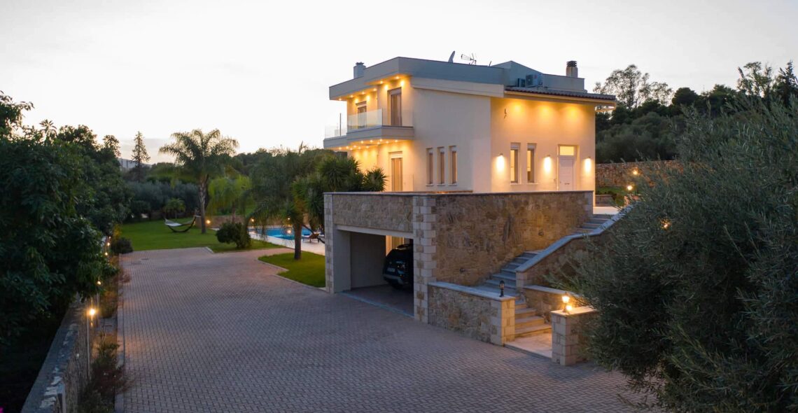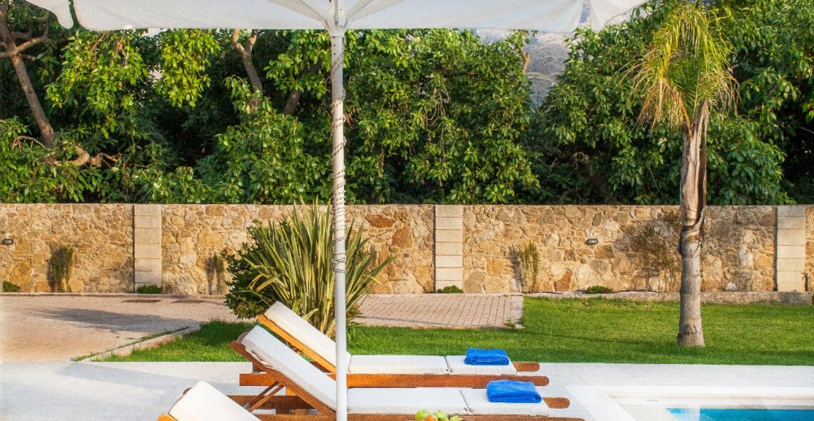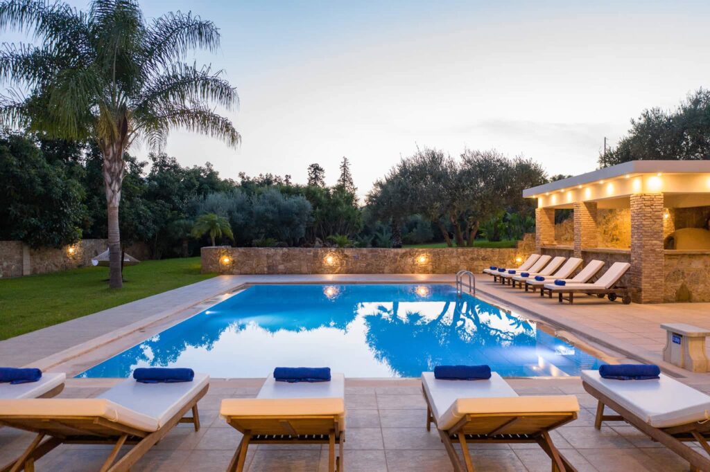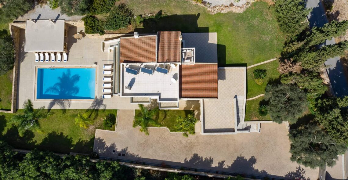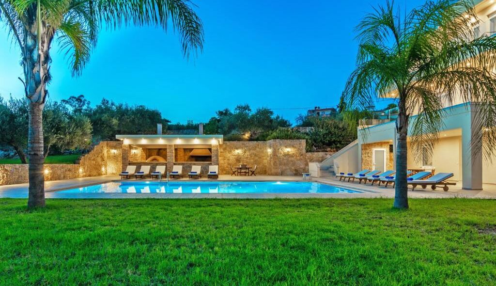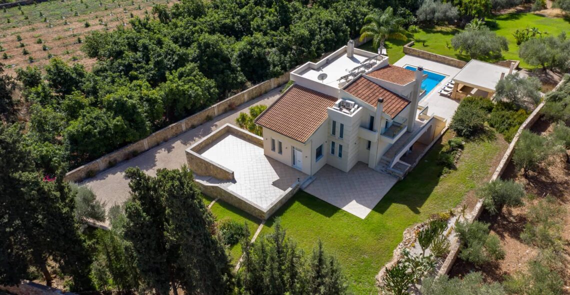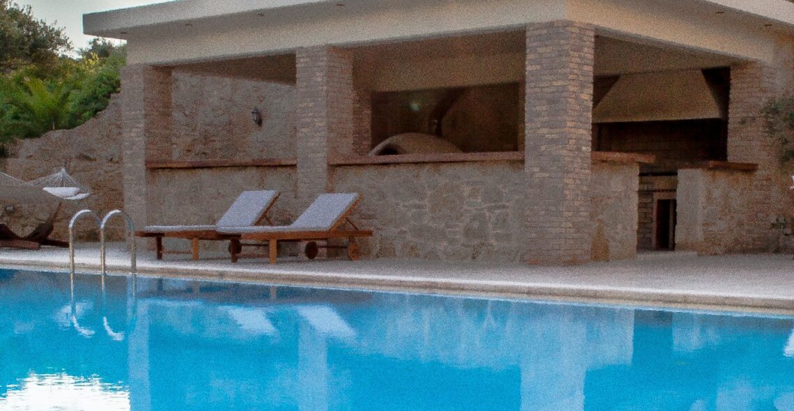Villa Melitini is located in Chania in the area of Vlites Souda. It is a three-level maisonette built in an area of 4.000 sq.m with ecological swimming pool with salt 78 m2, garden-lawn, garage, barbecue, wood-burning oven, garden with vegetables, herbs, vineyard (all biological) stone fencing and absolute privacy.