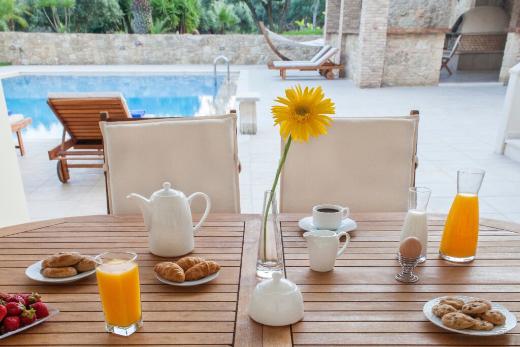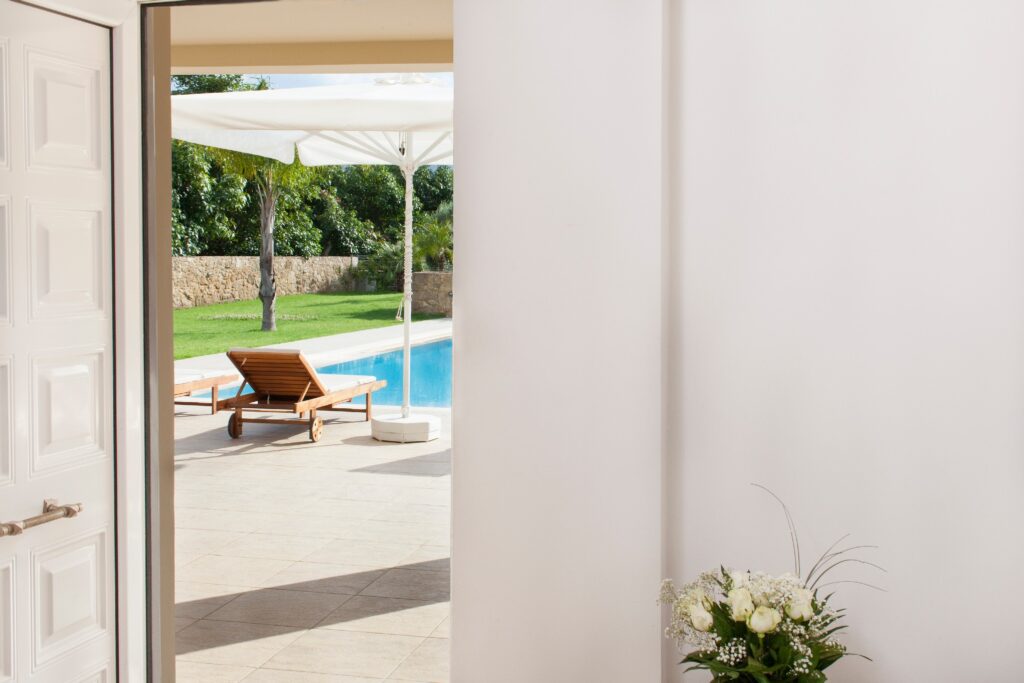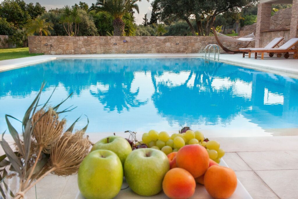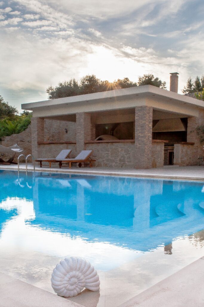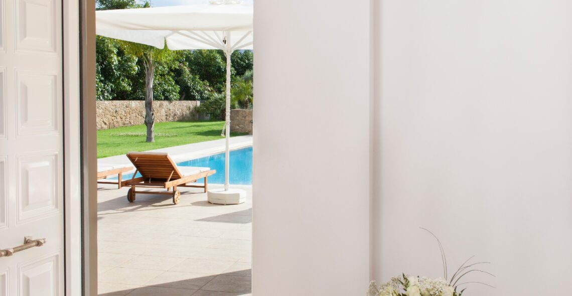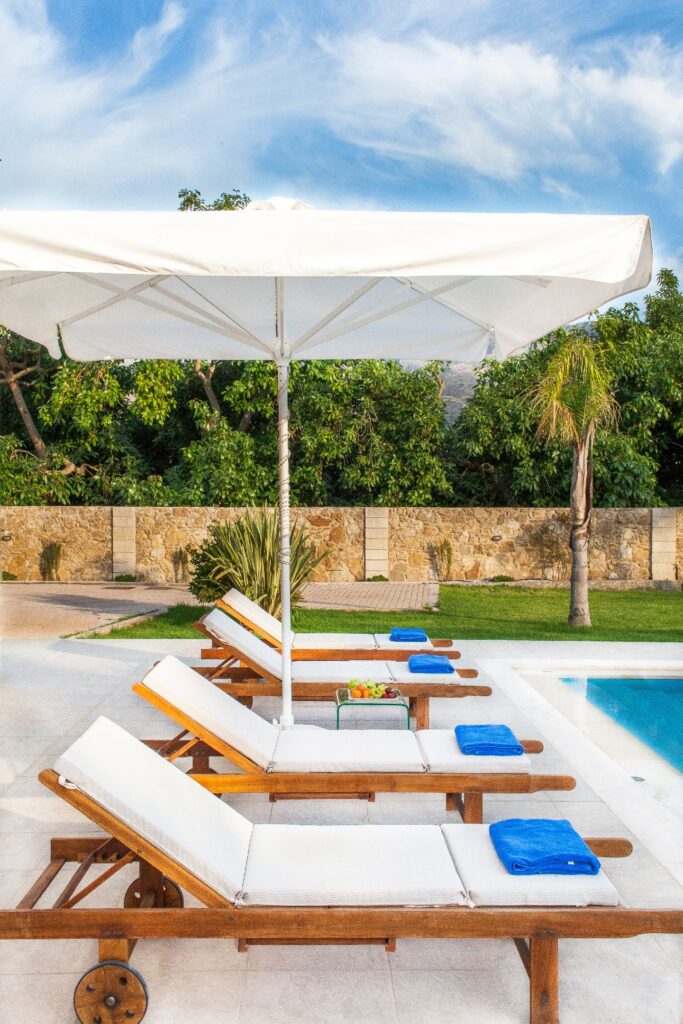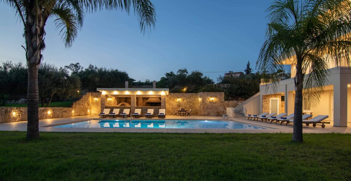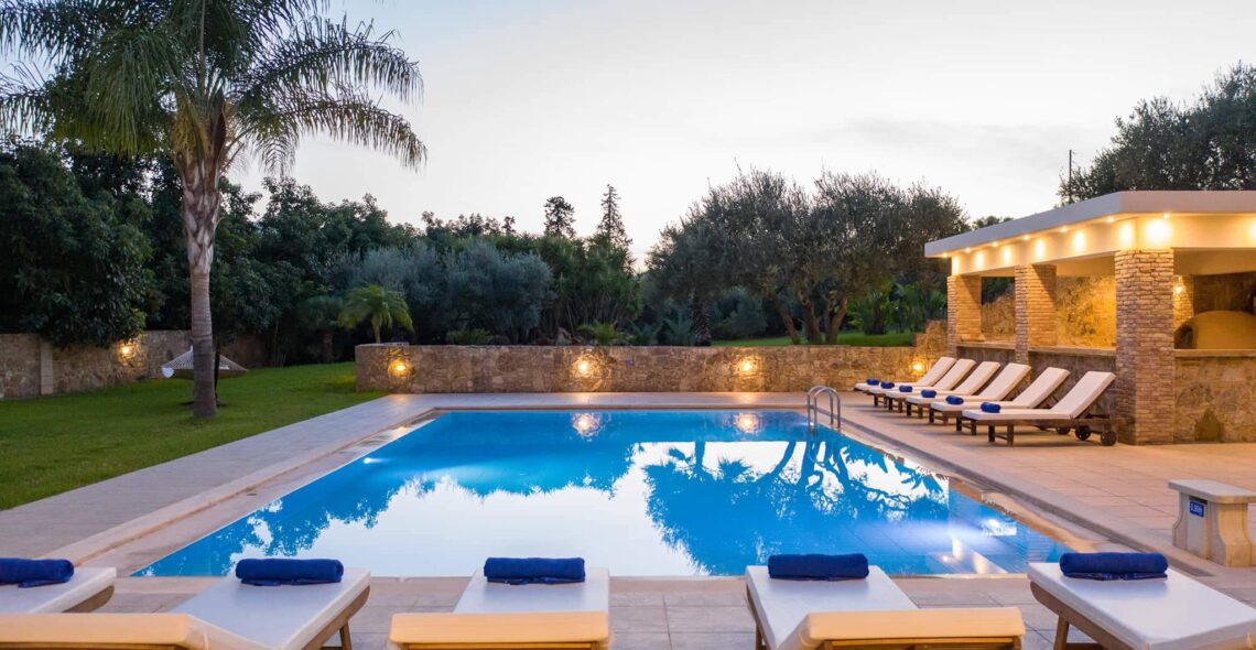 Villa Melitini is located in Chania in the area of Vlites Souda. It is a three-level maisonette built in an area of 4.000 sq.m with ecological swimming pool with salt 78 m2, garden-lawn, garage, barbecue, wood-burning oven, garden with vegetables, herbs, vineyard (all biological) stone fencing and absolute privacy.
