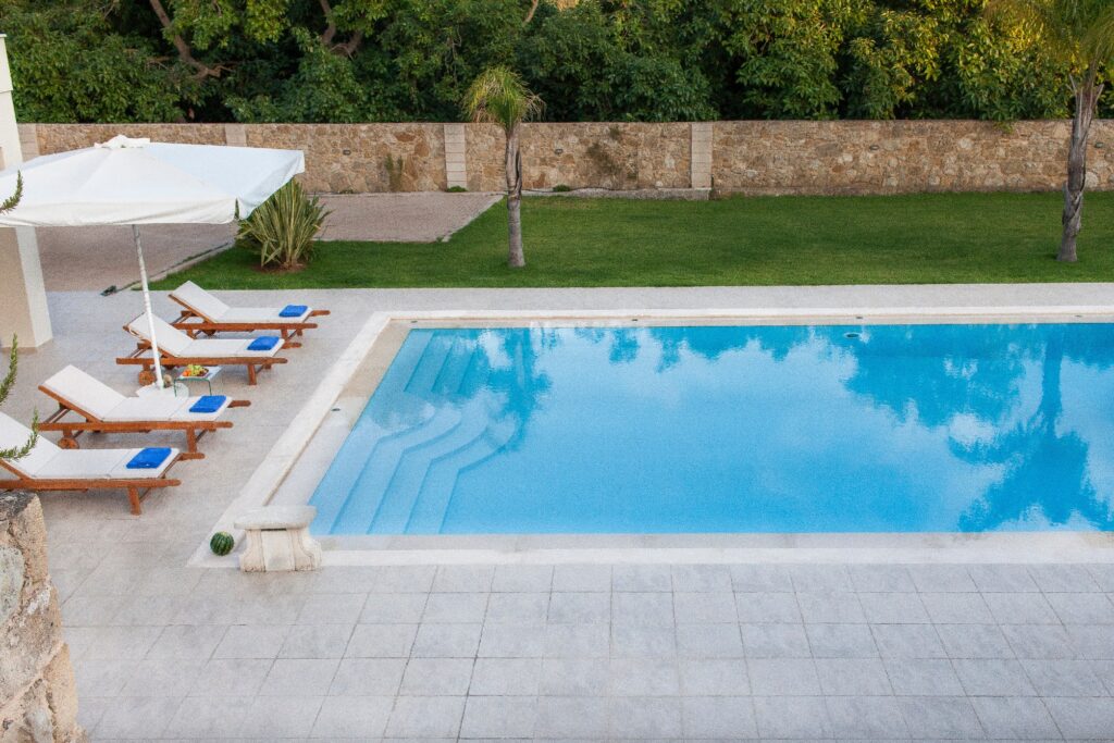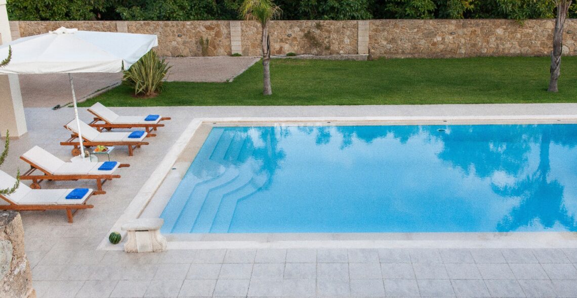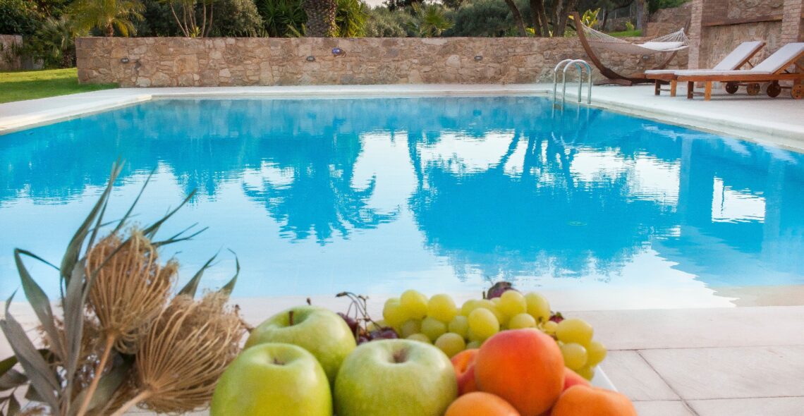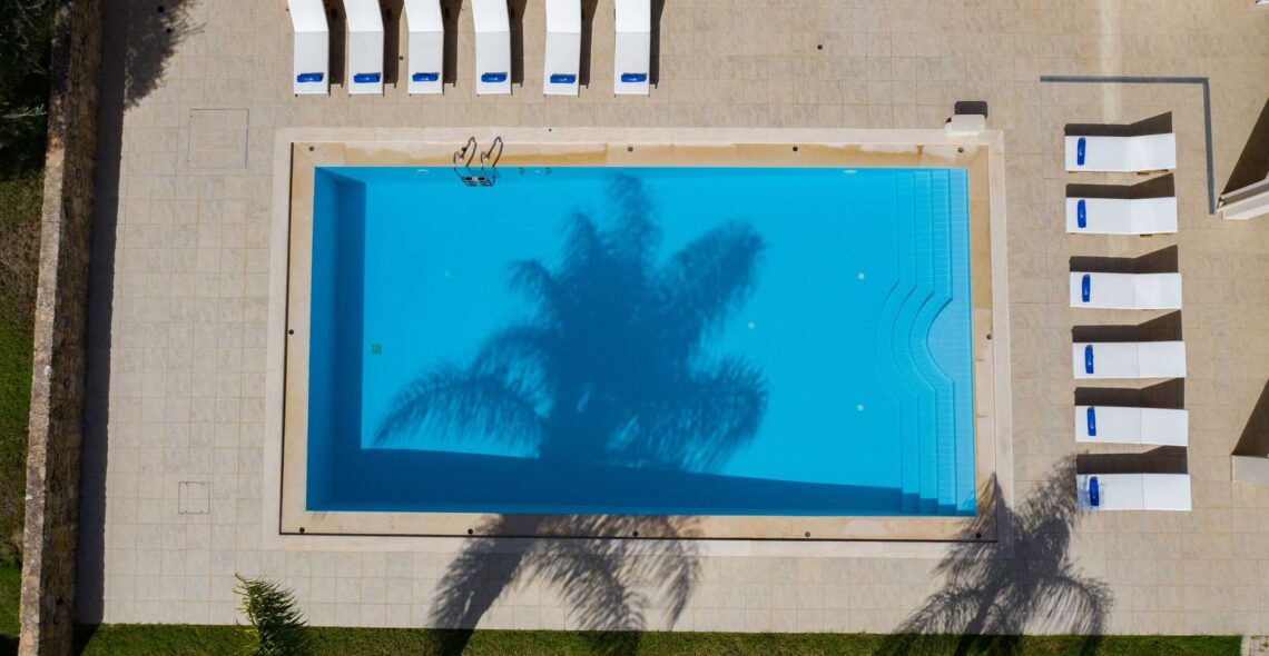 Swimming pool: The pool has an area of 78 m², ecological with salt. Sun loungers for 14 people are available.