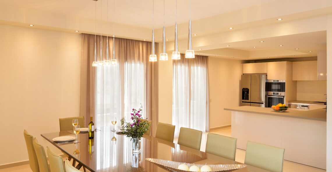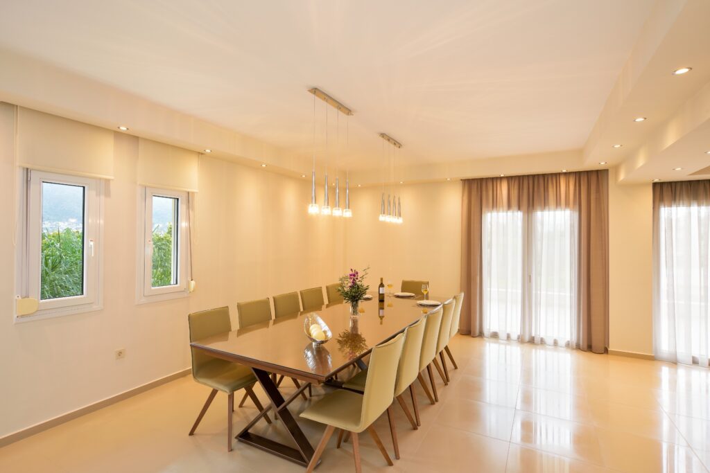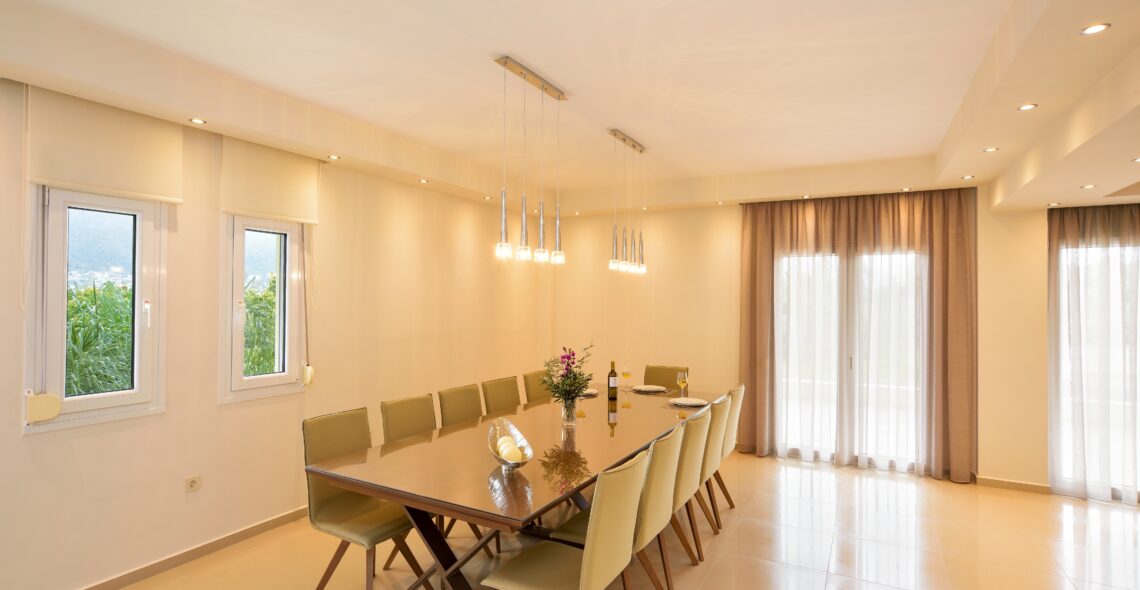 -Dinning room. The dining room is set between the lounge and the kitchen and is for 14 people. Features air conditioning