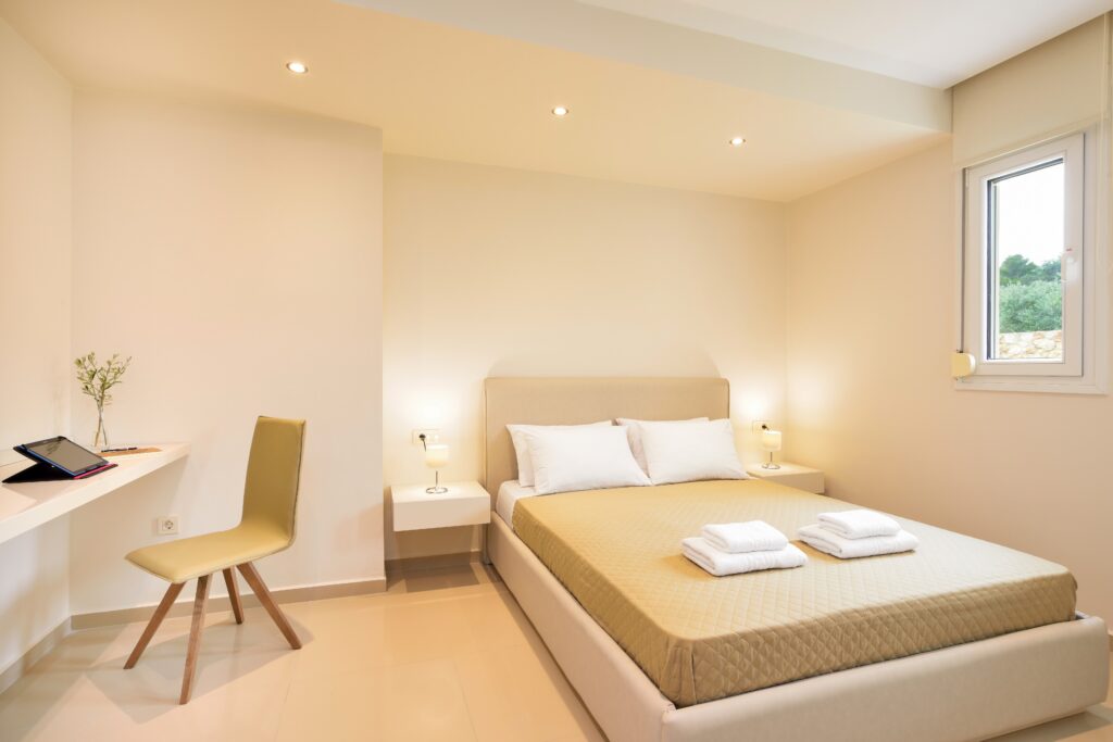 a) 1 bedroom with double bed and closet