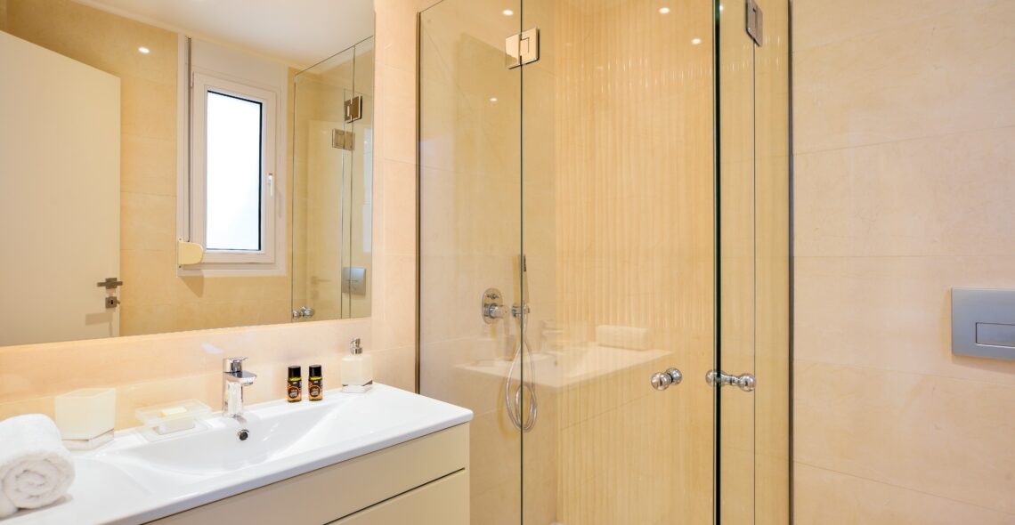 c) 1 bedroom with double bed and closet). All bedrooms have their own bathroom, air conditioning, plasma TV.