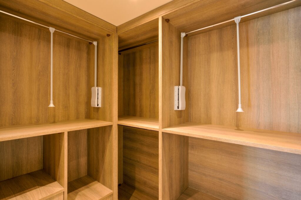 b) 1 bedroom with double bed and closet