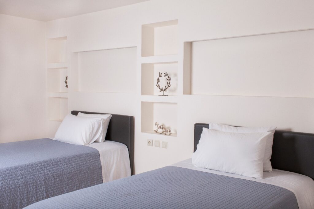 c) 1 bedroom with 2 double beds and an octagonal closet).