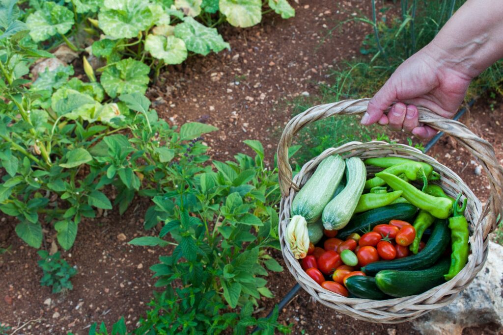 Vegetables: tomatoes, cucumbers, peppers, etc.